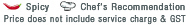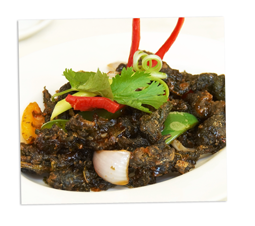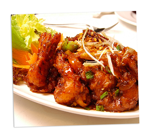 Diced chicken tossed with the Chef’s special spicy aromatic and tender root ginger sauce