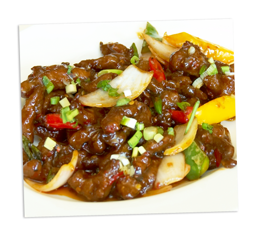 Slices of lamb cooked in an exotic sauce made from beans, five spice powder and other Chinese herbs.