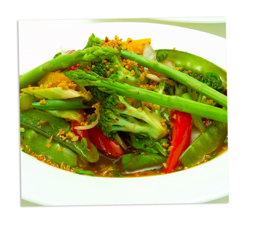 A wonderful combination of tofu, carrots, bamboo shoots, water chestnuts and broccoli tossed in garlic to delight every veggie lovers.